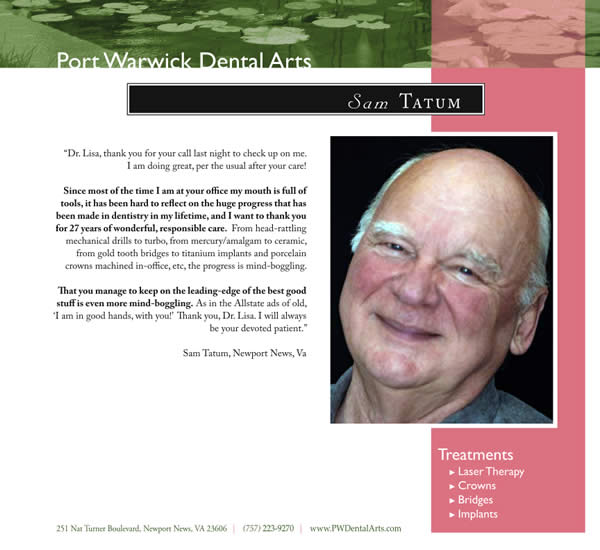 In fact, Dr. Lisa Marie Samaha is a professional artist and a dentist, and this artistic sensibility is embodied in all of her stunning smile designs. From advanced power whitening and revolutionary porcelain veneers to single-visit ceramic crowns and aesthetic tooth colored fillings, we utilize only state-of-the-art cosmetic smile techniques.